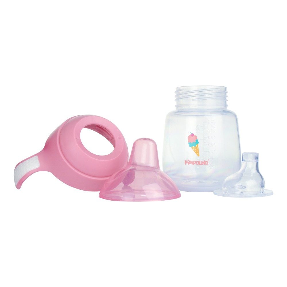 O copo de treinamento Pimpolho possui bico de silicone macio e anatômico que estimula o exercício de sucção e o desenvolvimento oral. É antivazamento e possui tampa para proteger o bico contra sujeira. As alças foram desenvolvidas para ter uma boa aderência nas mãos pequeninas do bebê. Auxilia na transição da mamadeira para o copo. Capacidade 240ml.