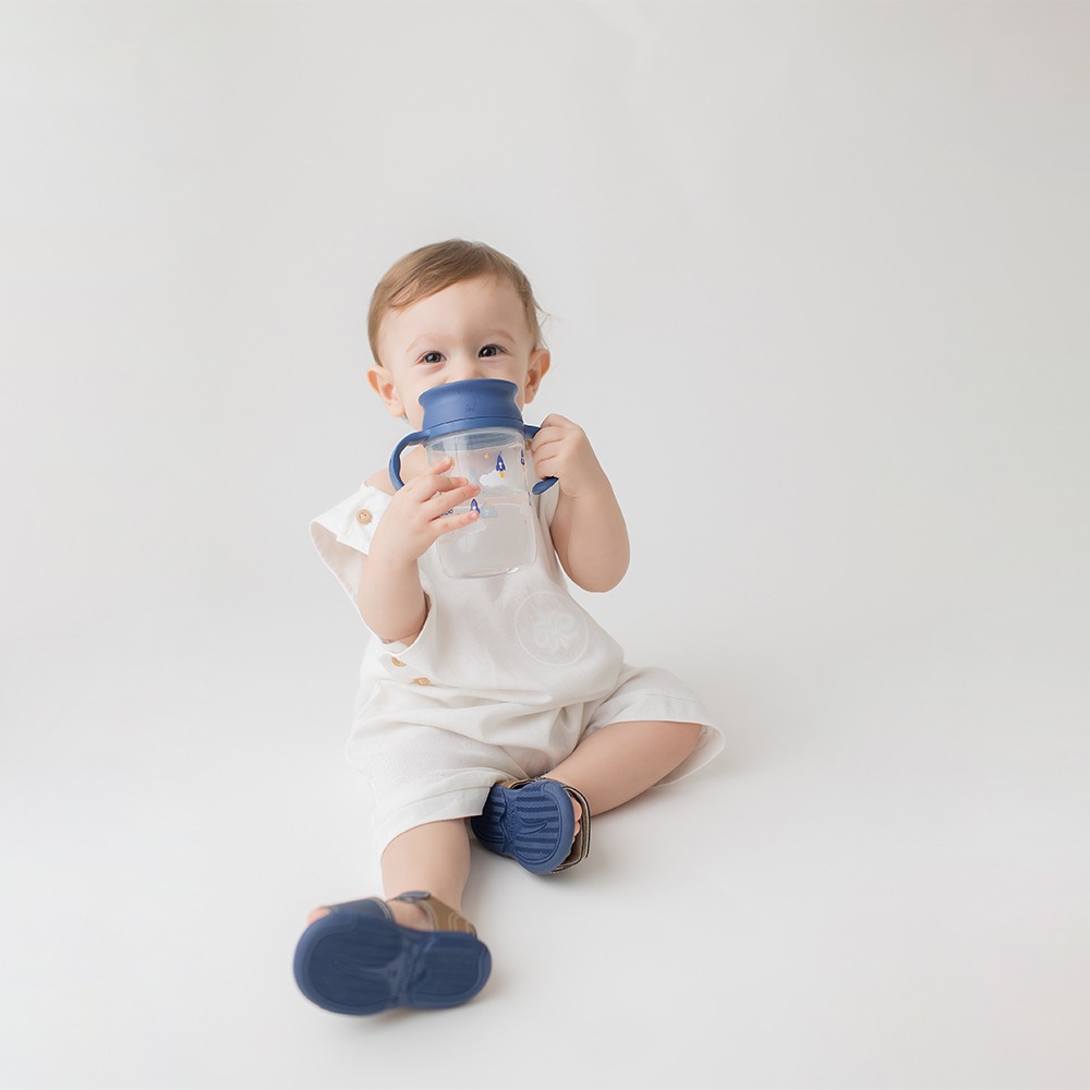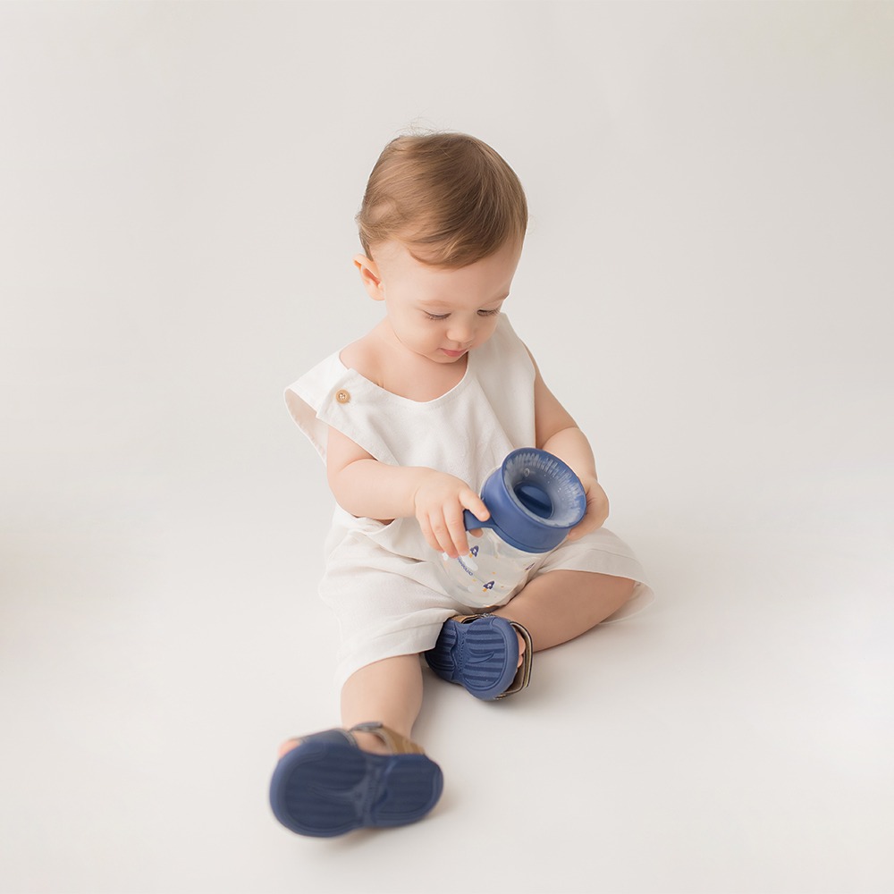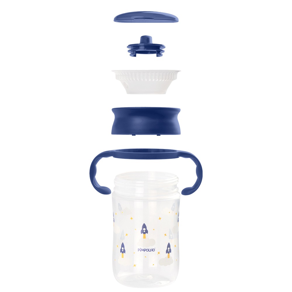 Ideal para os bebês que estão no período de transição da mamadeira para o copo. Seu design permite que o bebê consiga beber o líquido de qualquer posição da borda sem que haja vazamentos quando o copo é movimentado. Conta com alça dupla, removível, que facilita o manuseio da criança e chave abre e fecha para facilitar a abertura e higienização da proteção de silicone. Capacidade: 330ml.