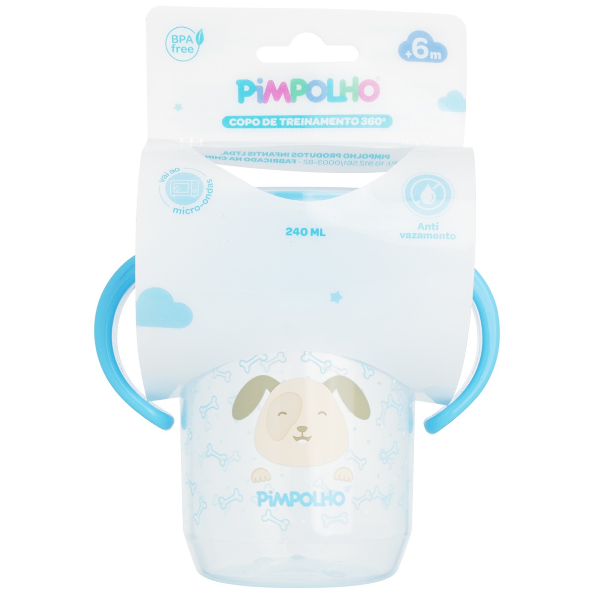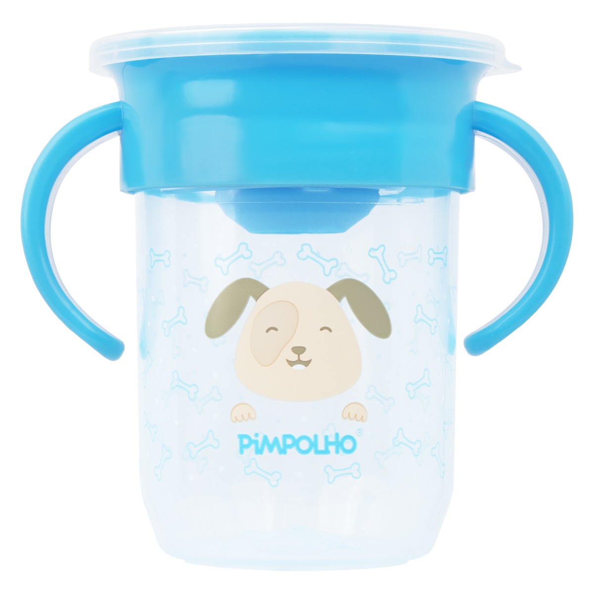 O copo de treinamento 360° com alça e tampa da Pimpolho foi desenvolvido para proporcionar mais independencia e confiança no exercício de transição alimentar e desenvolvimento do bebê. Sua borda possui acolchoamento de silicone 360° permitindo que o bebê consiga beber o líquido em qualquer posição sem que haja vazamentos quando o copo é movimentado, pois o silicone permite que a liberação do líquido seja acionada somente através da sucção. O silicone também pode ser removido para higienização. O copo possui alça de pega dupla removível e tampa que protege a borda de contaminações. Além de estampas divertidas e capacidade 240ML, é livre de BPA, pode ir ao micro-ondas (sem a tampa) e à lava-louças.