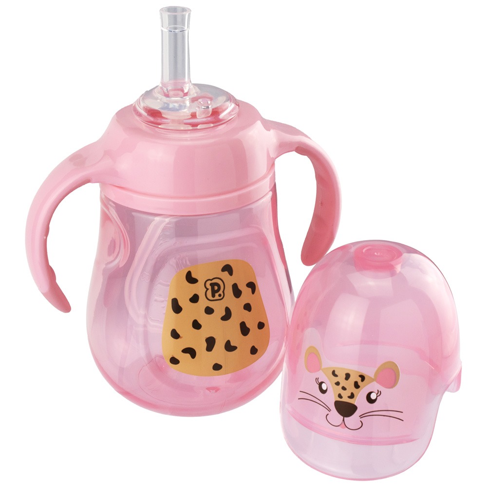 O Copo de treinamento com formato de bichinho encanta e atrai a atenção dos pequenos. Possui canudo maleável e válvula que evita a ingestão de ar, além de dupla alça removível para facilitar o manuseio, auxiliando o bebê no exercício de coordenação. Além disso, possui tampa e válvula contra respingos que proporcionam praticidade e higiene.